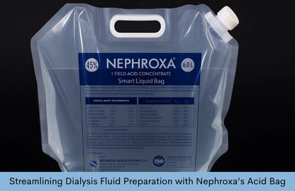 Nephroxa’s acid concentrate solution for dialysis comes pre-mixed in the bags, allowing dialysis centers to quickly prepare the necessary dialysis fluid for use. This reduces the need for additional manual steps, minimizing human error and enhancing operational efficiency. The pre-mixed acid concentrate eliminates the need for staff to measure and mix separate components, saving valuable time and labor.